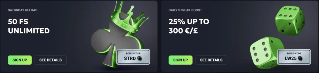 The casino has a library of over 2,000 games, including slots, live casino, instant-win titles, bonus-buy options and game shows offering from major providers like NetEnt, Evolution, and Pragmatic Play.