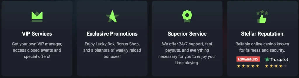 Yes.We offer a 25-level loyalty program where players earn coins for wagering that can be redeemed for free spins and special items. A VIP Club for high rollers further includes perks like cashback, exclusive reload bonuses, priority withdrawals.